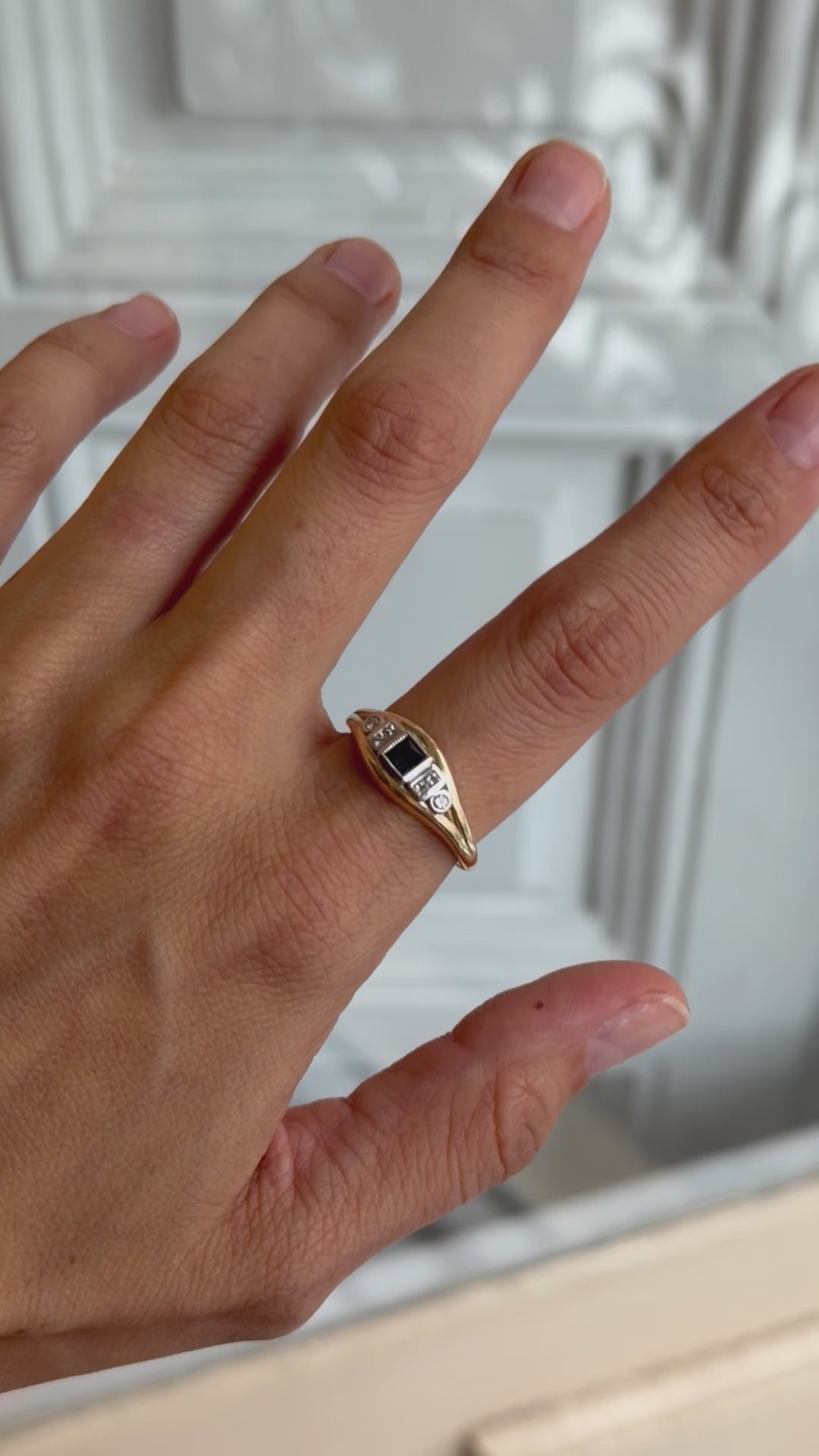 A design that takes us back to another era. With a brilliant-cut central diamond, the star stone of this piece, surrounded by 17 brilliants and 6 sapphires of an intense blue, like that of the deep seas. This jewel shines with its elegance and is, for us, a piece designed to immortalize an eternal commitment.
