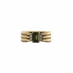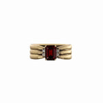 Una sortija de líneas elegantes, coronada por un diamante central, acompañado por cuatro diamantes que lo enmarcan.
