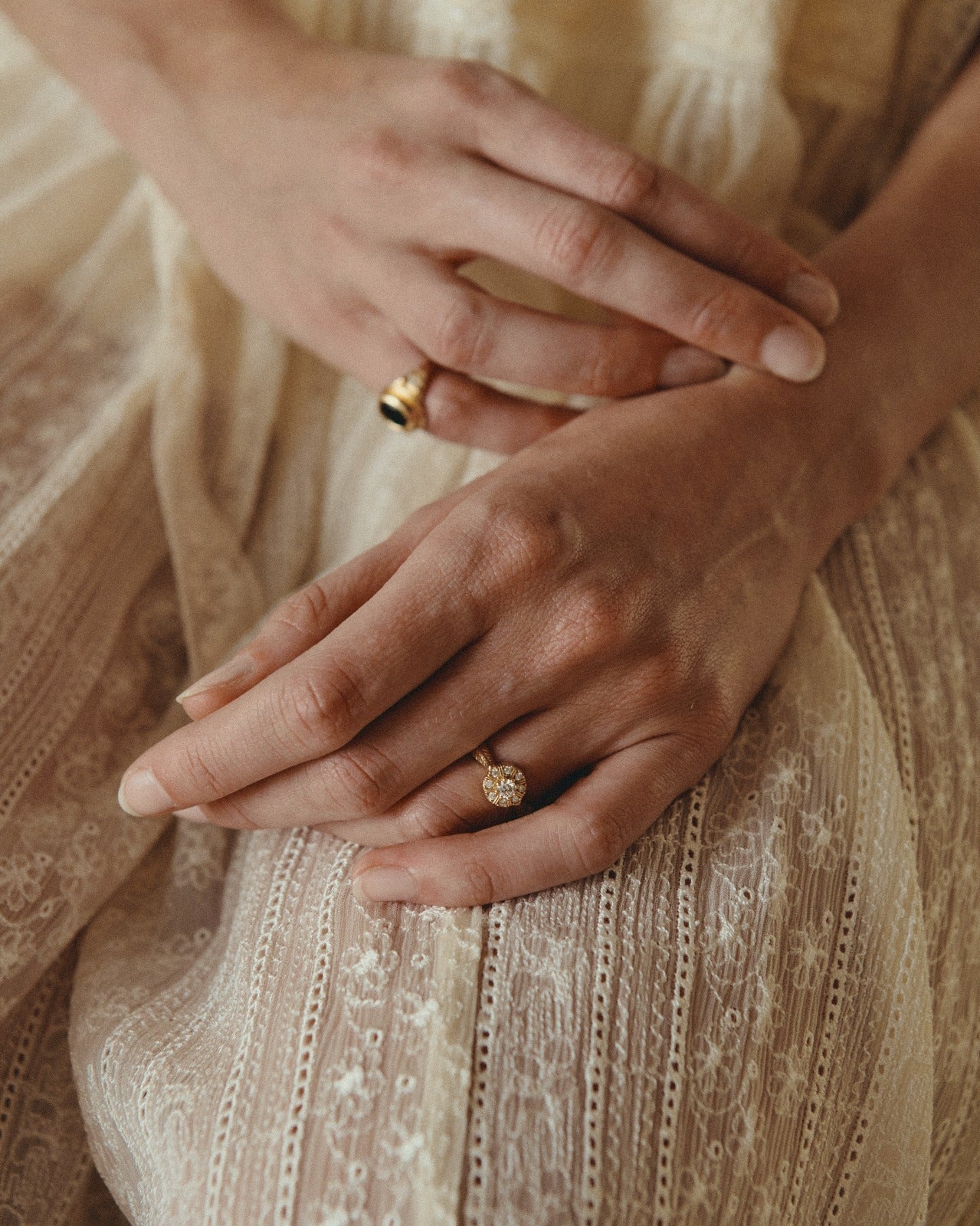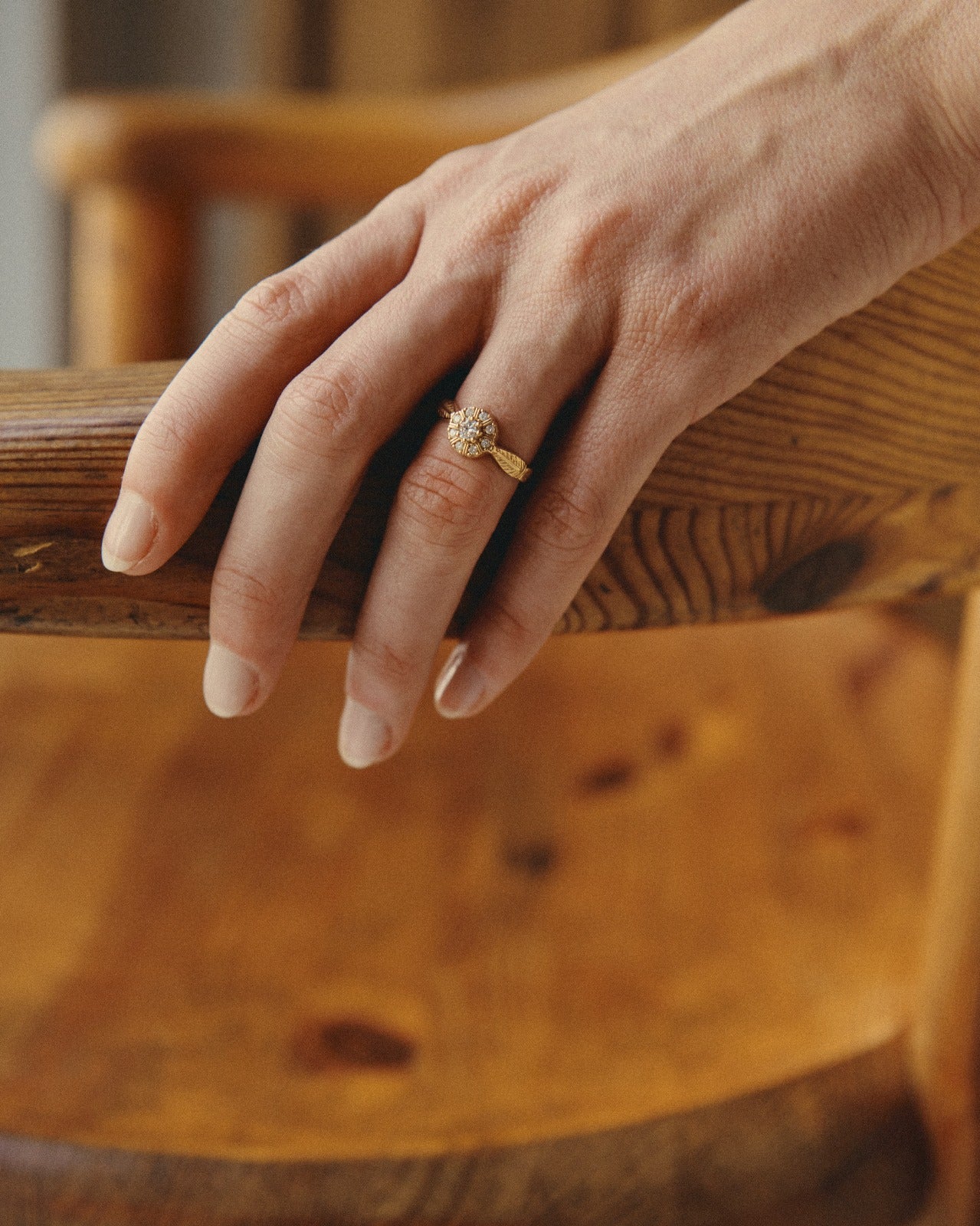 This ring is ideal to combine with the Artemis earrings. Its floral design inspired by a flower garden full of life transports us to the magic of nature.
