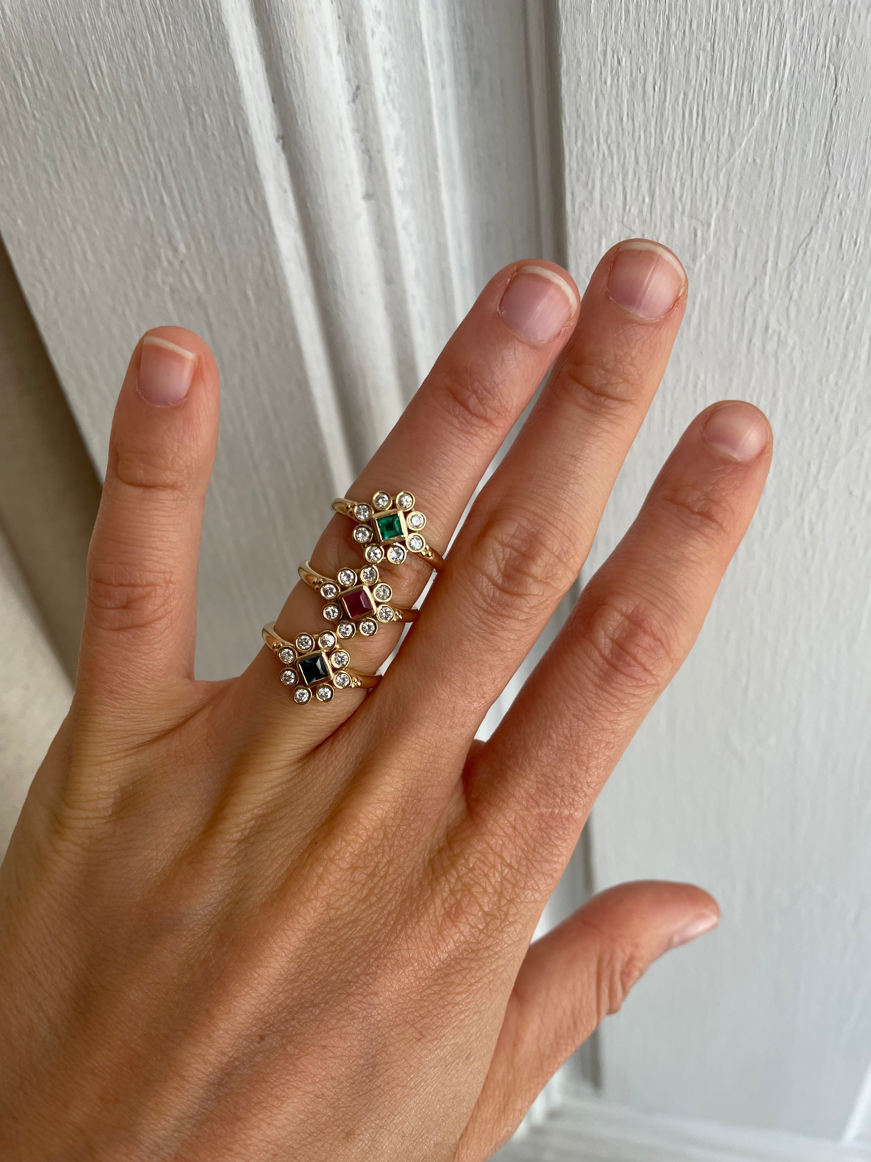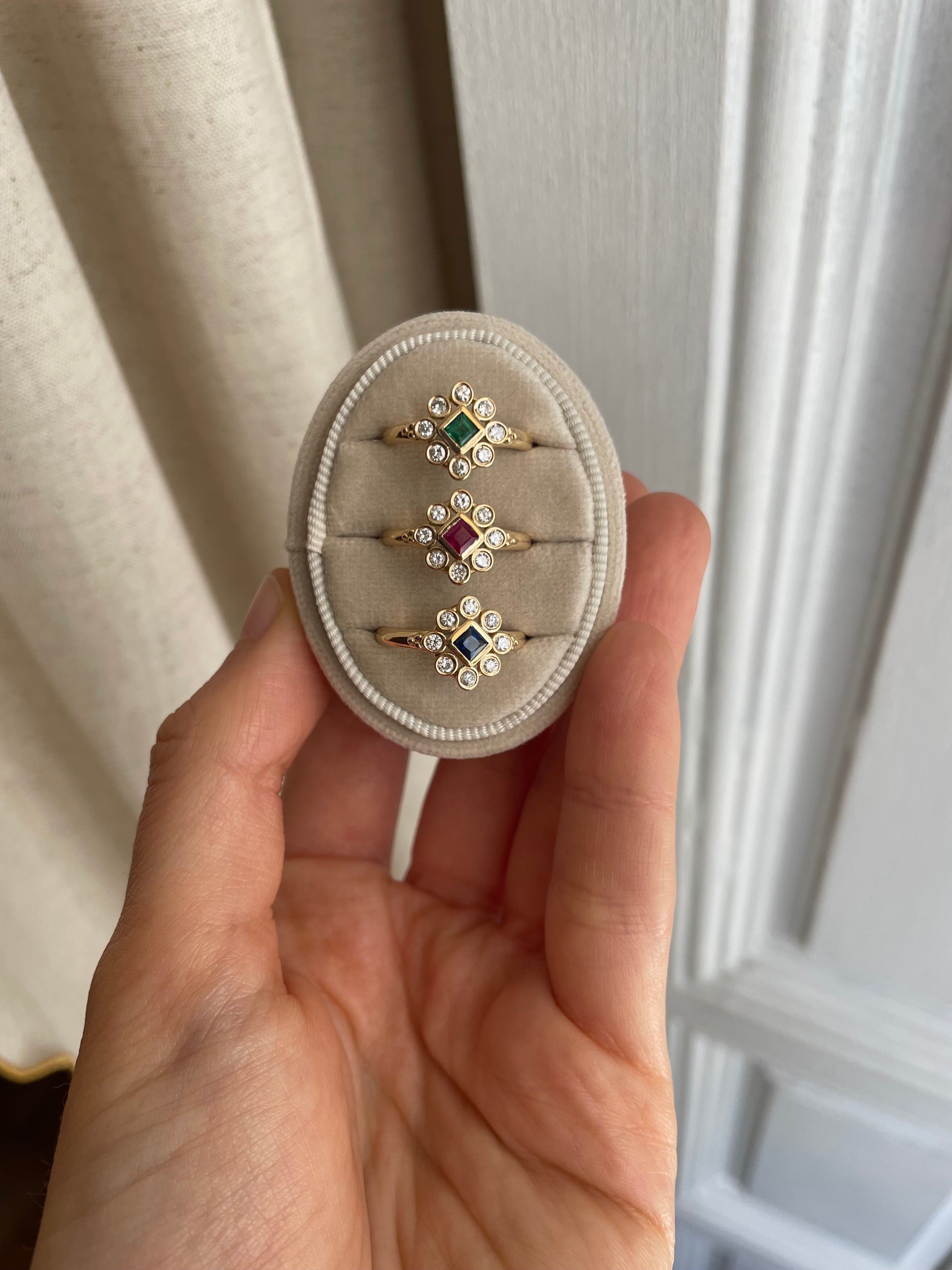 This ring is inspired by a family jewel that has been passed down from generation to generation. We chose the ruby not only for its beauty and the intensity of its colour, but also because it is a stone that activates energies, acts on the heart chakra and encourages positive dreams.