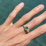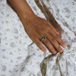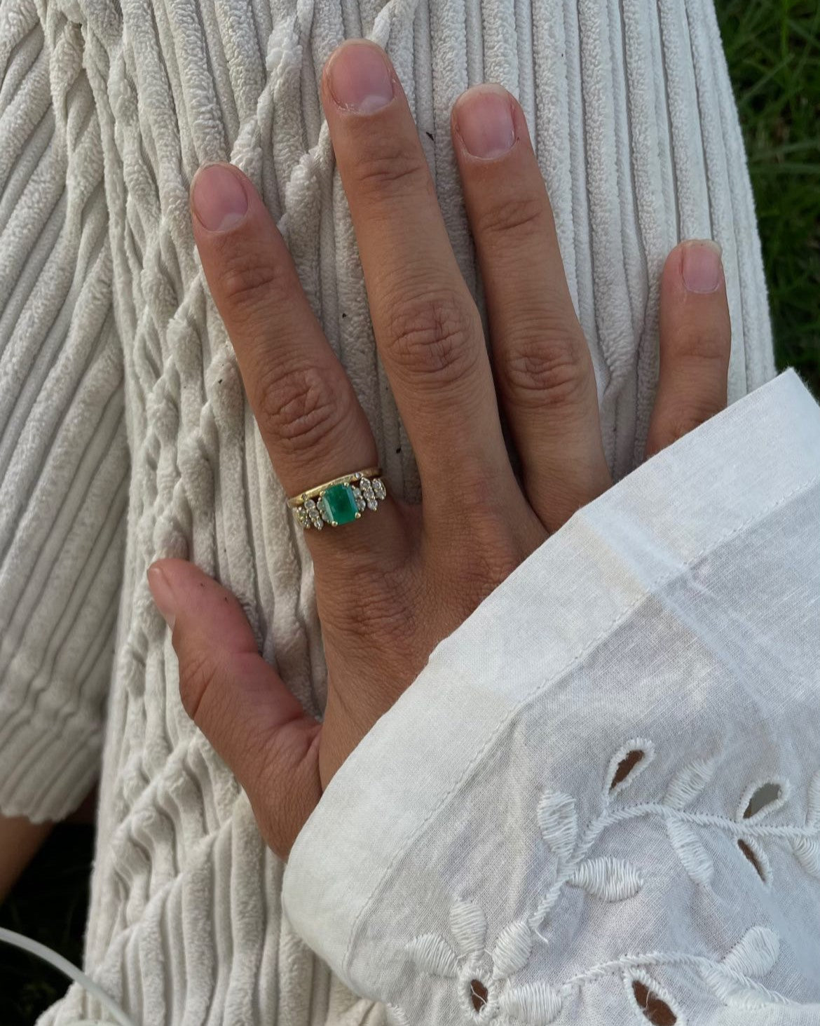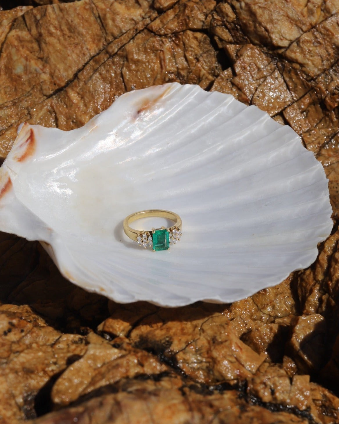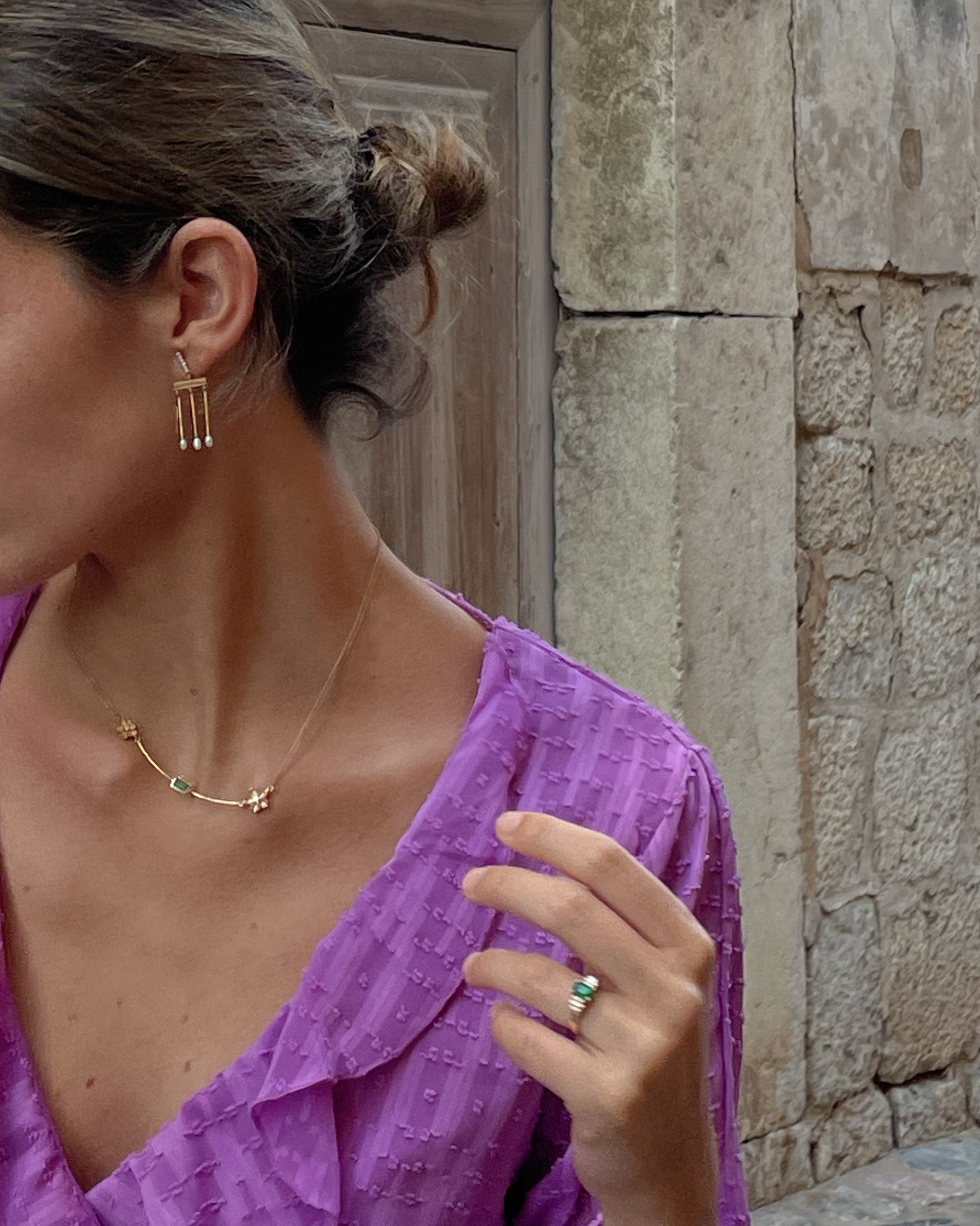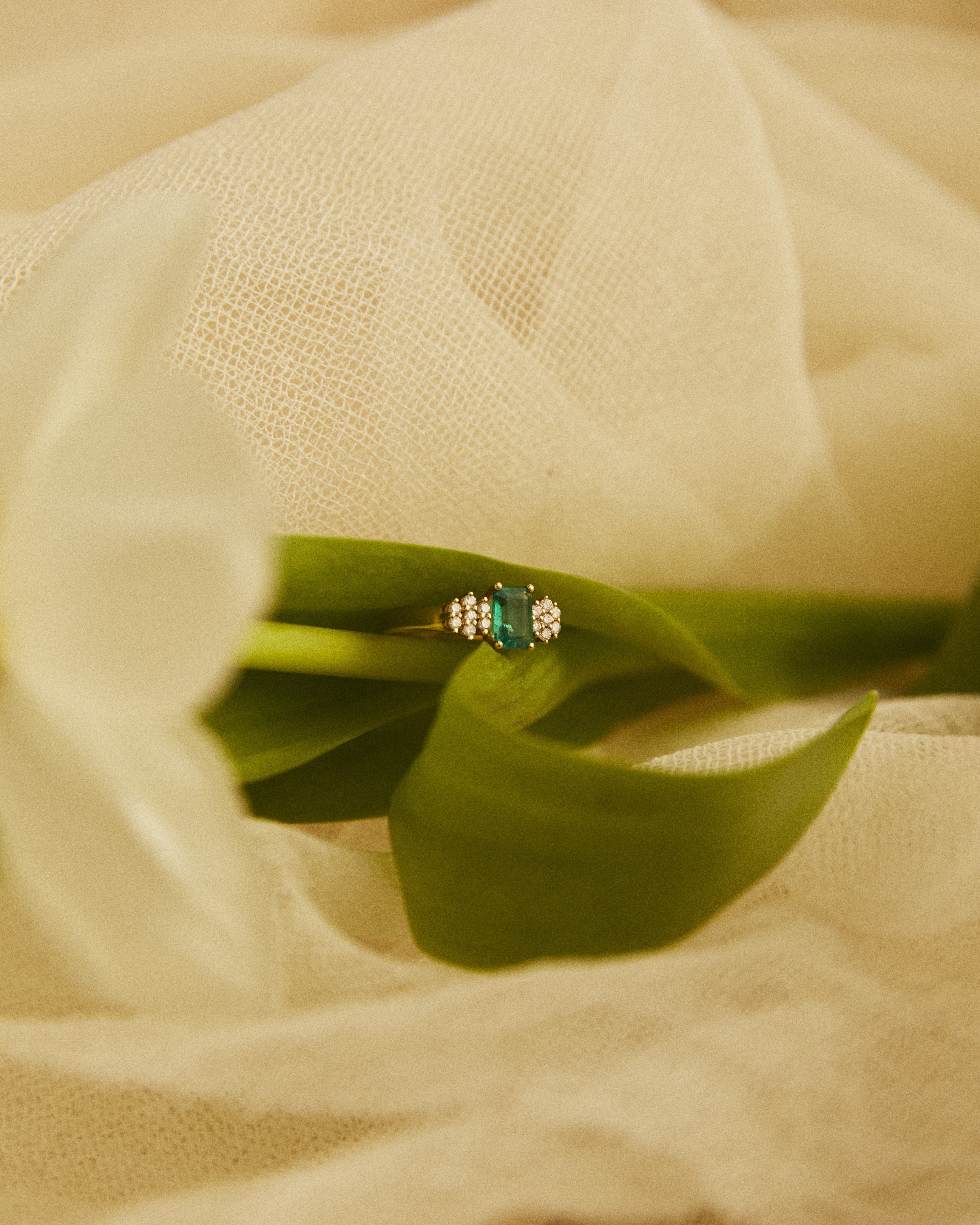 A jewel inspired by nature, not only for its shapes but also for its colours. The emerald tone transports us to the crystal-clear waters of a hidden beach. This jewel will undoubtedly tell very special stories.