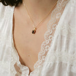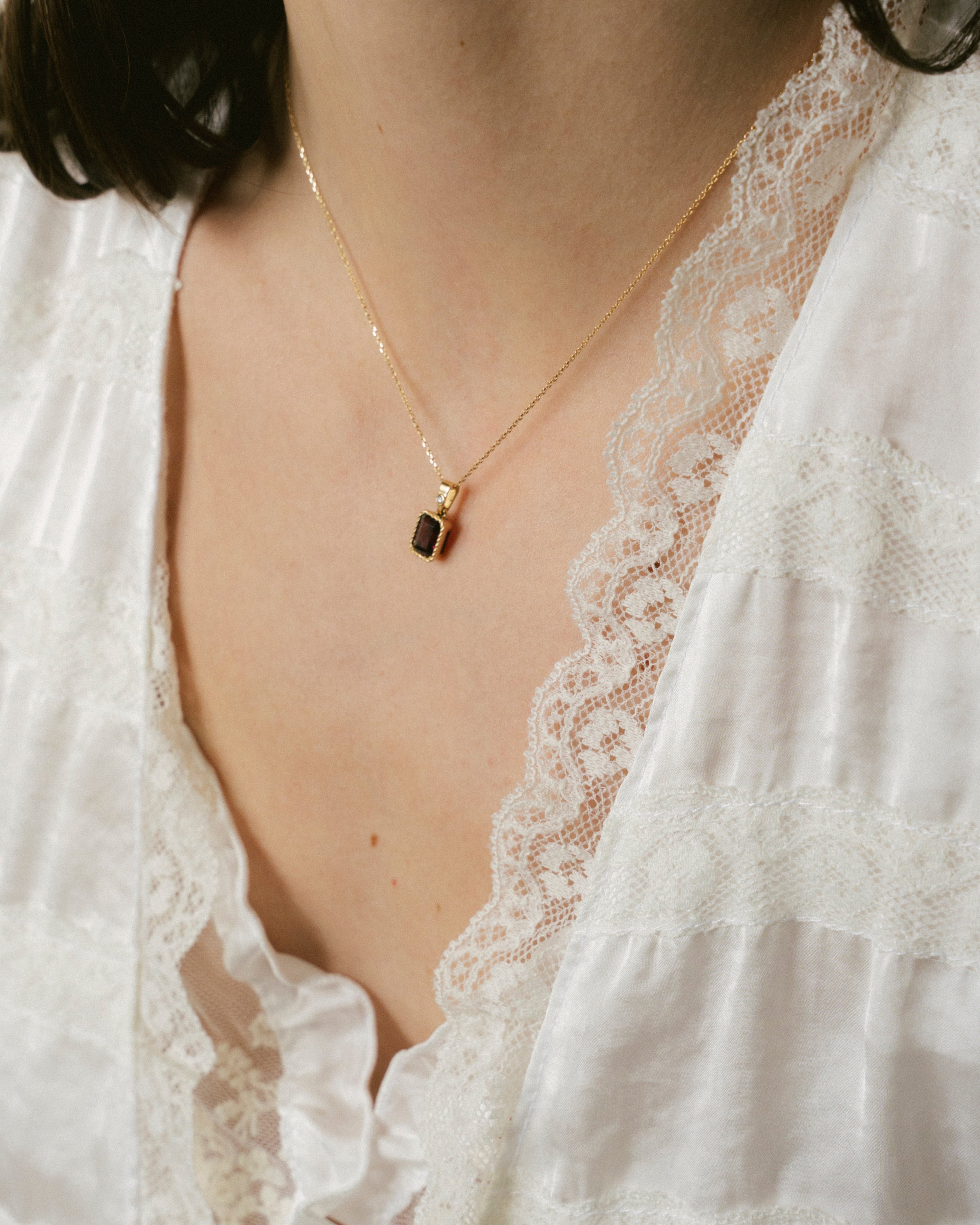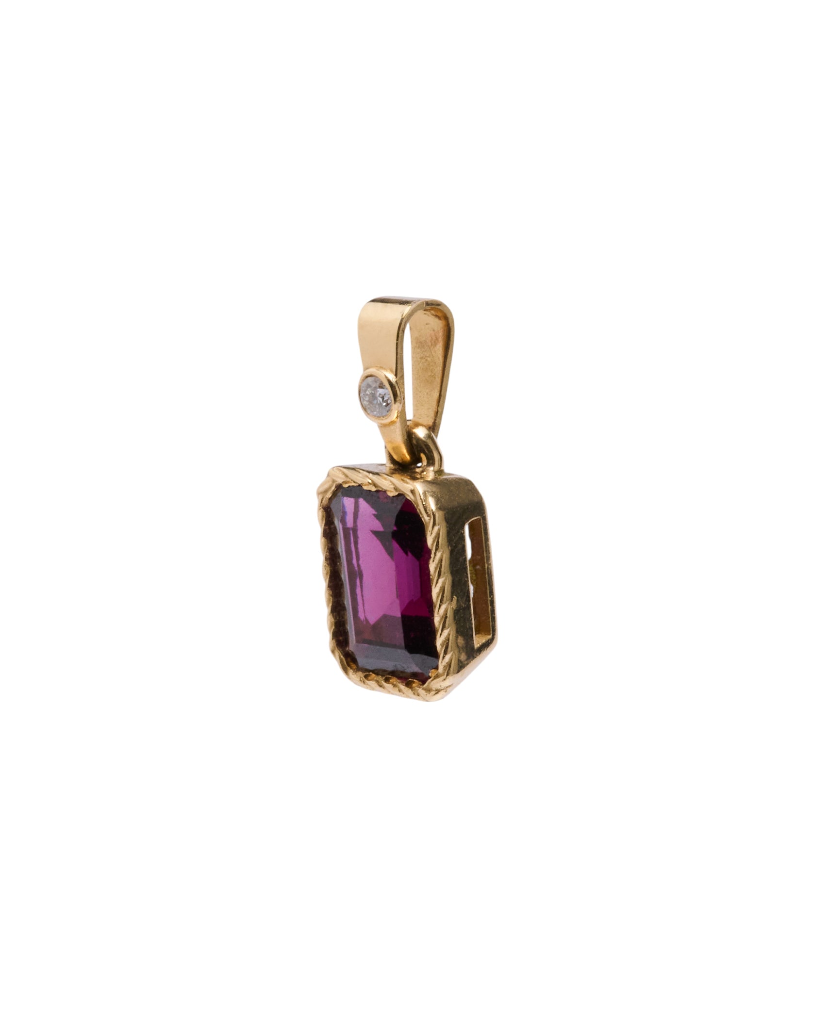 El granate es el protagonista de esta joya, enmarcado en un trenzado de oro de 18tk y un diamante, este colgante evoca feminidad y la energía vital. Un diseño con mucha fuerza y color, no pasará desapercibido.