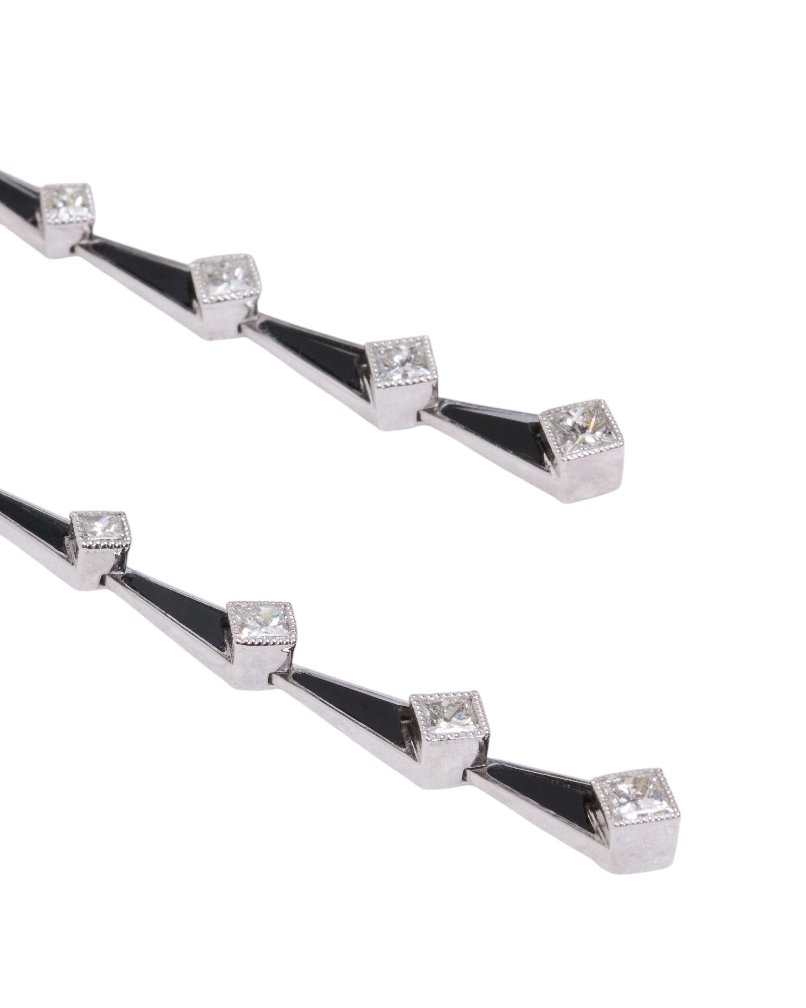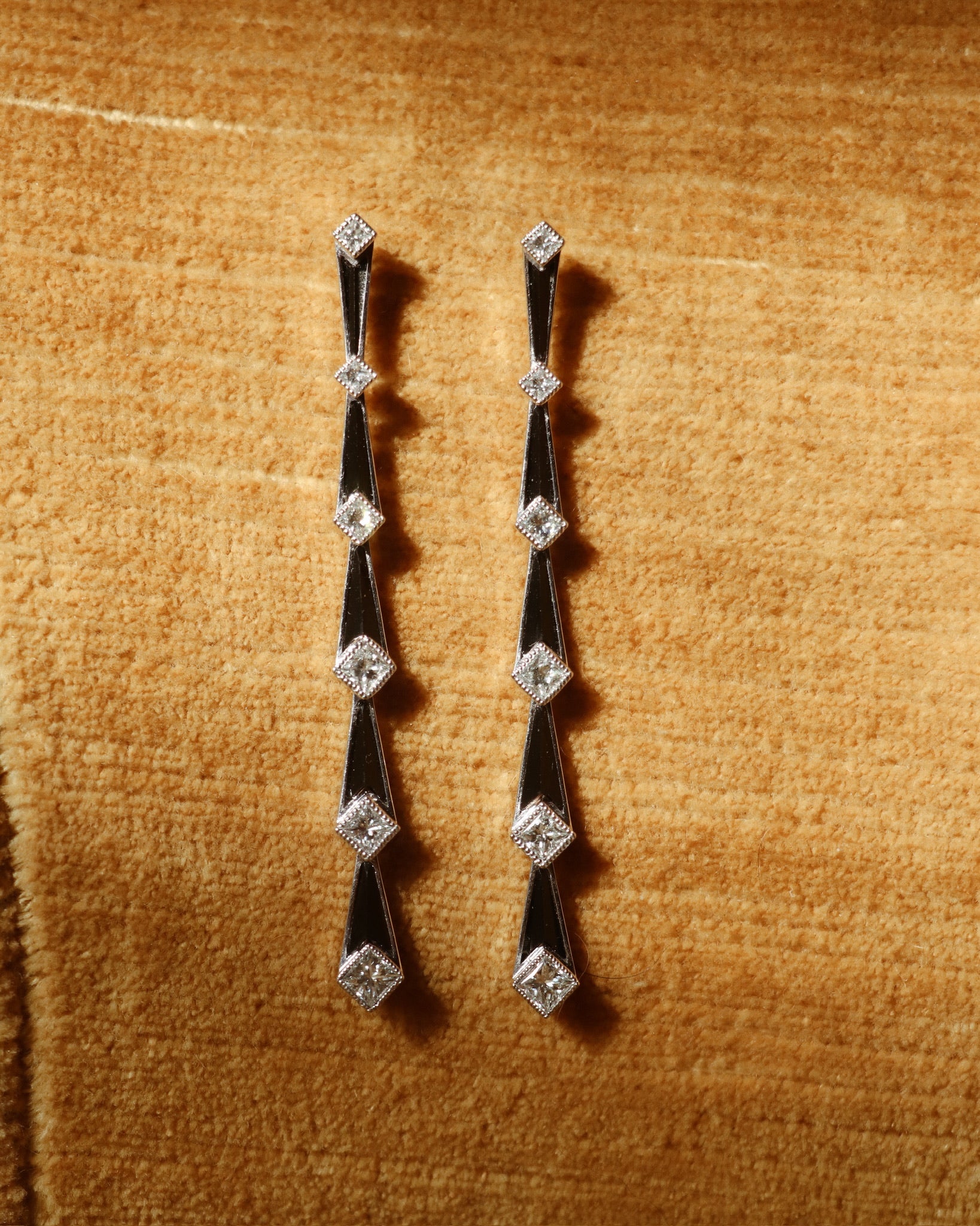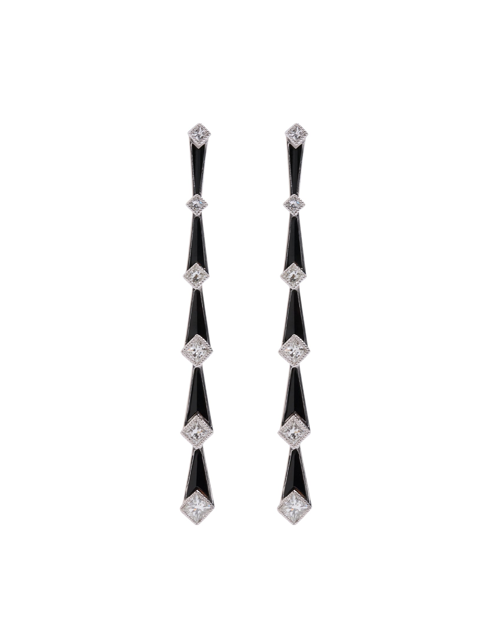 Sus costuras hacen que estos pendientes se caractericen por un movimiento especial, la elección de las piedras crea un juego precioso de contraste, cada ónix está tallado a mano para conseguir ese resultado tan especial, una pieza única, una reliquia en tu joyero.