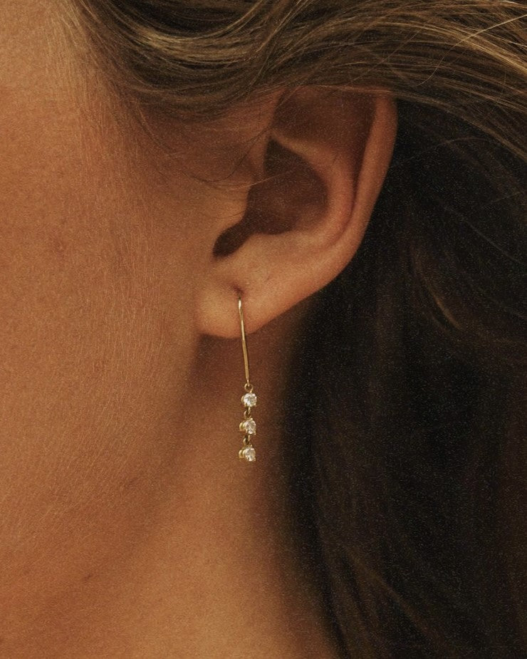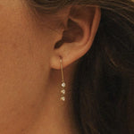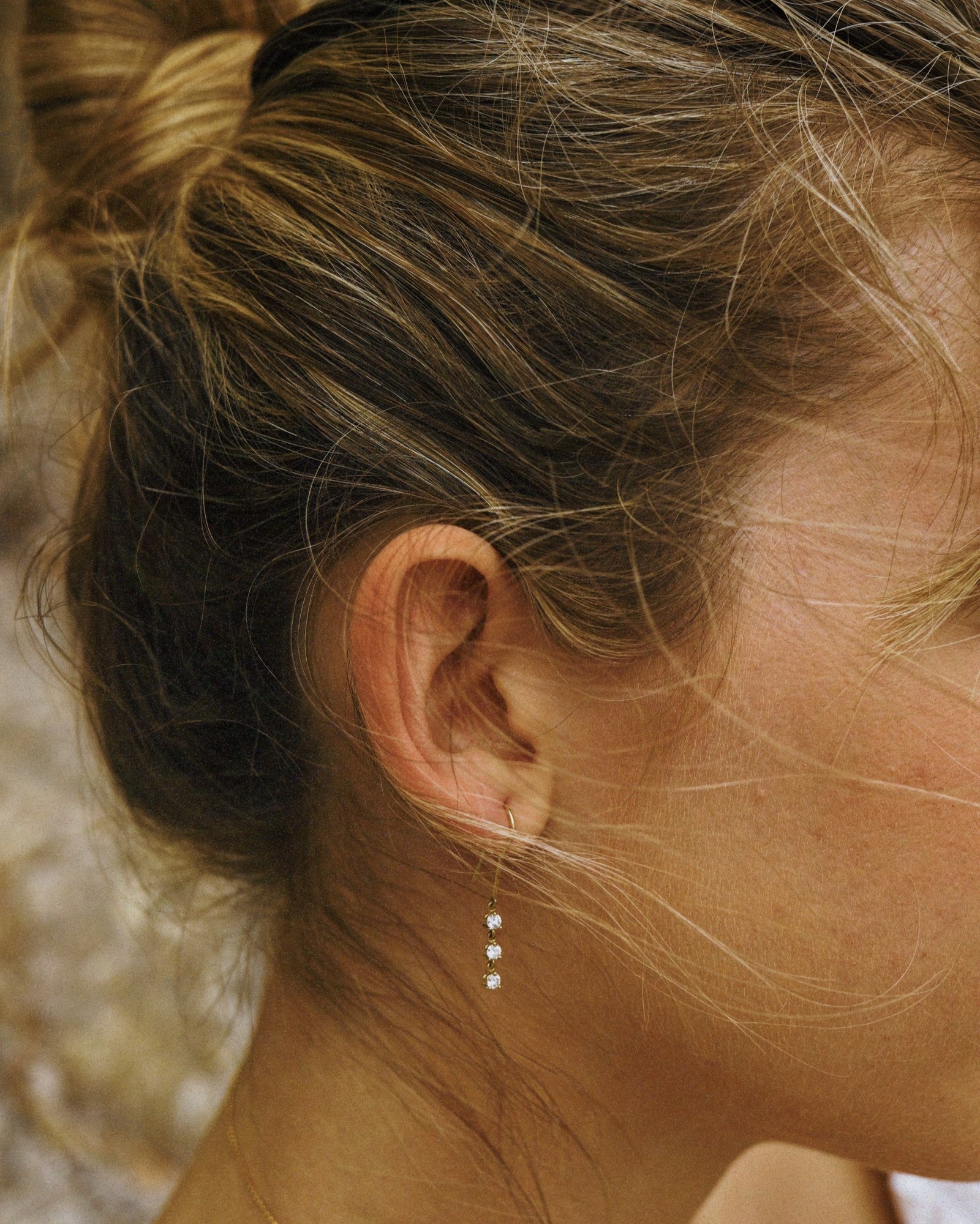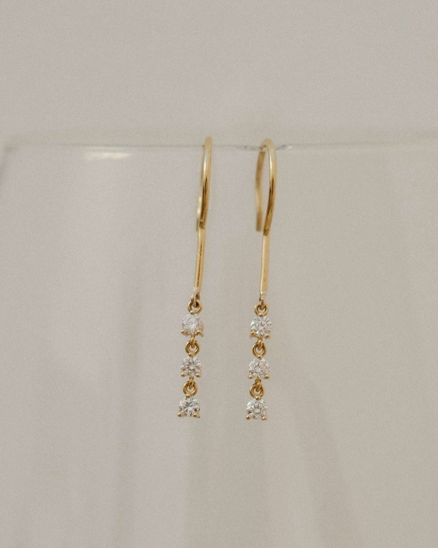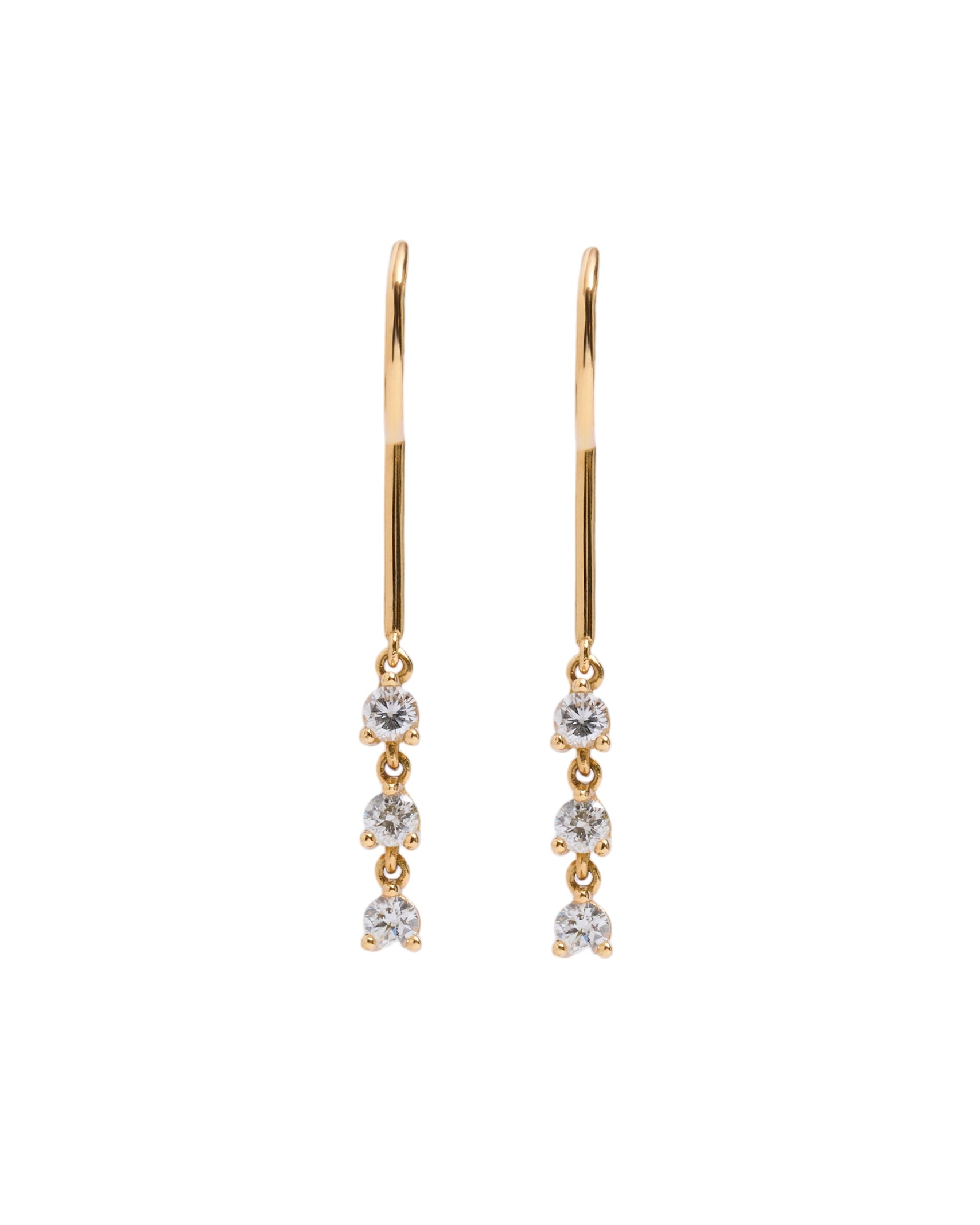 La elegancia, sencillez y personalidad recogidas en seis diamantes talla brillantes que caen en cascada como si de gotas se tratase. Cuelgan de un gancho de oro amarillo, diseño que rompe con la sobriedad del diamante y con los diseños de joyería más clásicos.