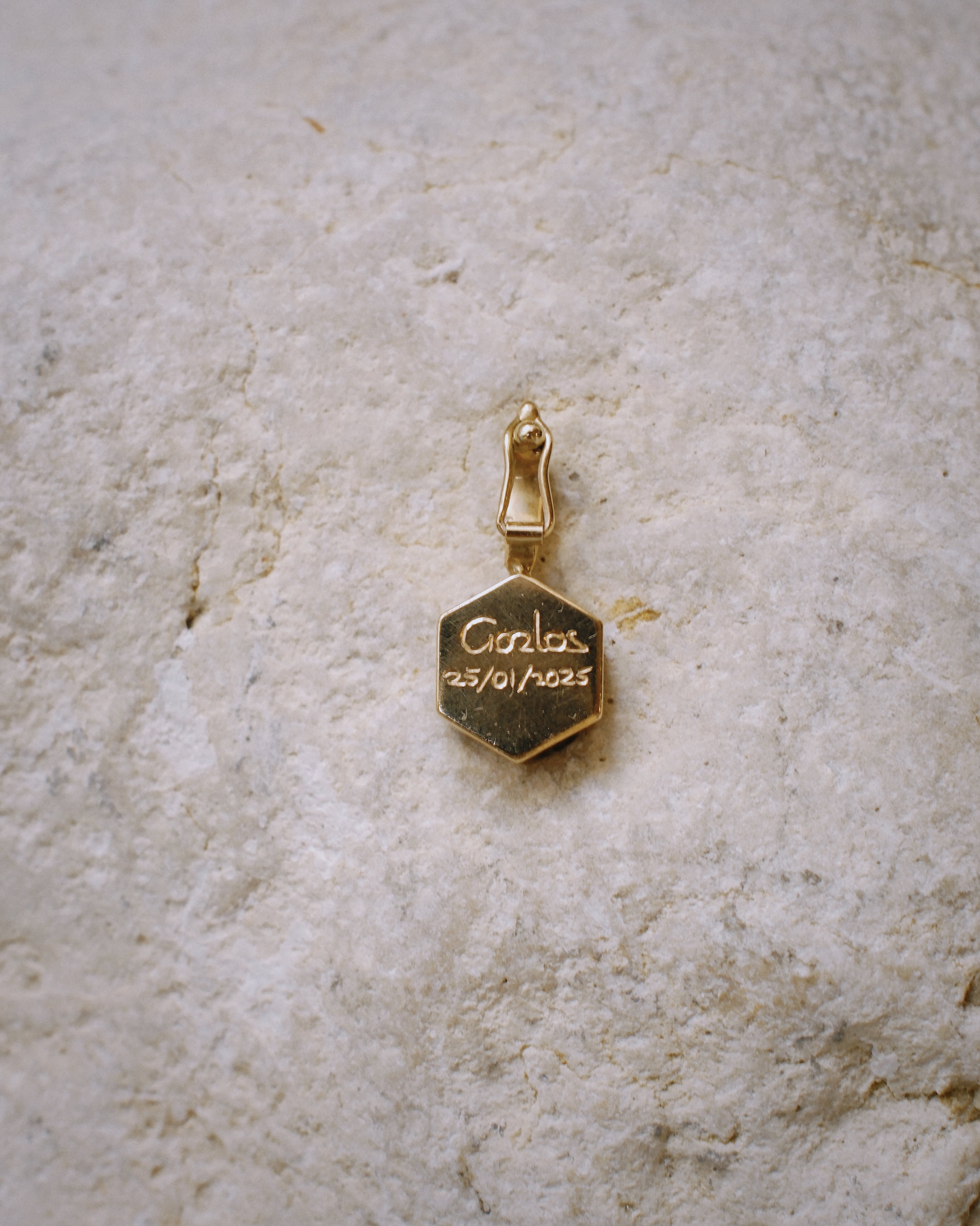 Ágata hexagonal 8mm con grabado hecho a mano
